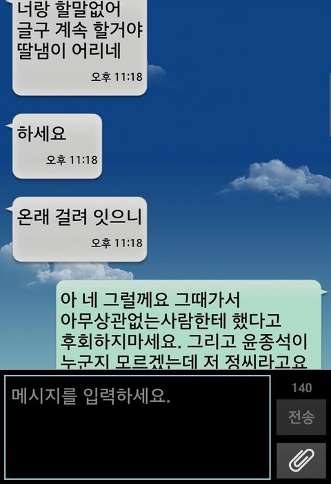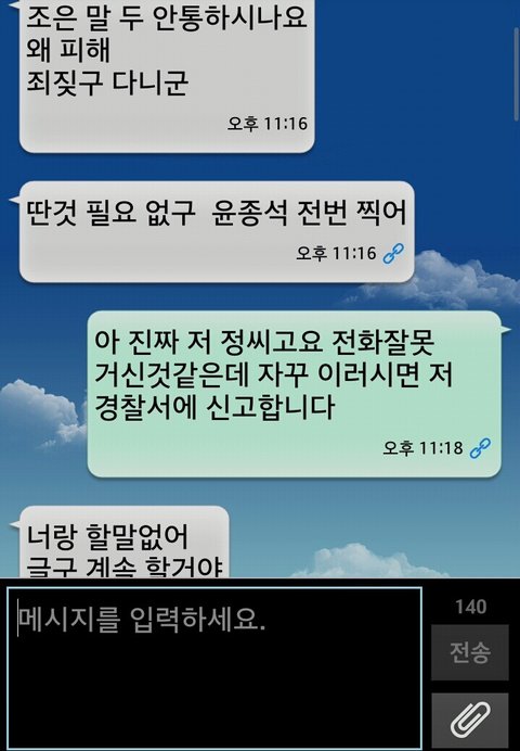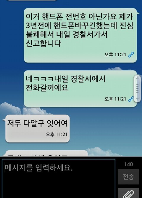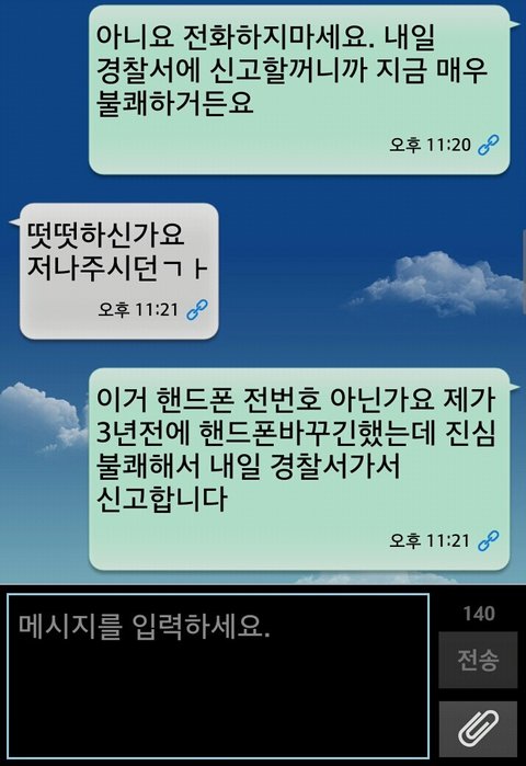 끈질기게 전화가 오면서 제 동생을 괴롭히는 겁니다. 제 동생은 어리둥절해서 문자를 주고받은 모양인데 동생이랑 문자 주고받은 것들을 첨부합니다.