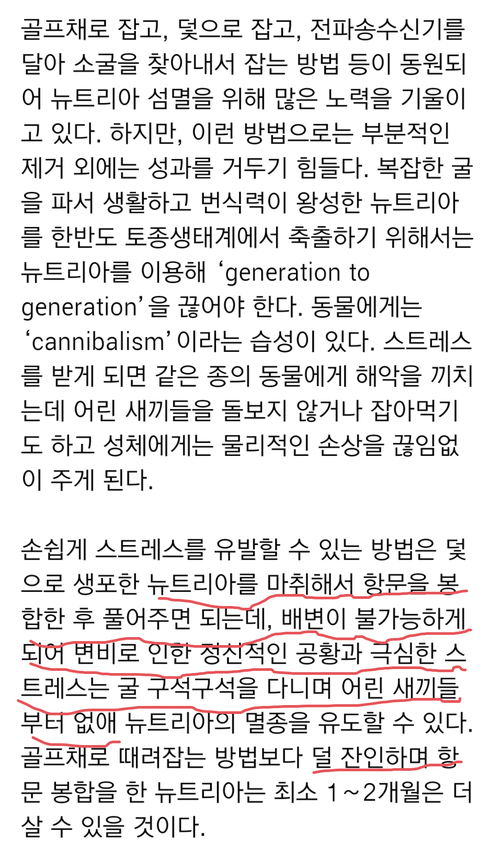 덜 잔인한 뉴트리아 섬멸 방법