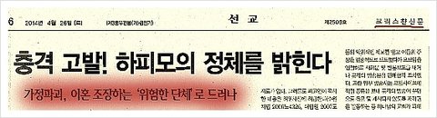 가정파탄, 이혼조장 위협하는 하피모의 정체가 크리스챤신문을 통해 밝혀졌습니다.