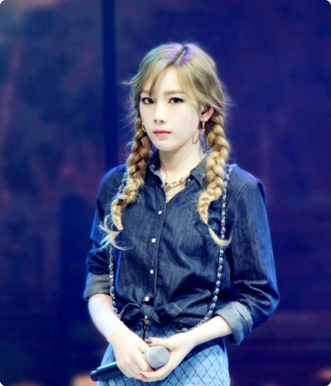 땋은 양갈래 머리 태연 어려보이고 예쁨..
