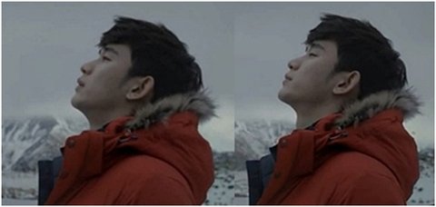 영상 속에서 눈으로 뒤덮힌 새하얀 설원과 대조되는