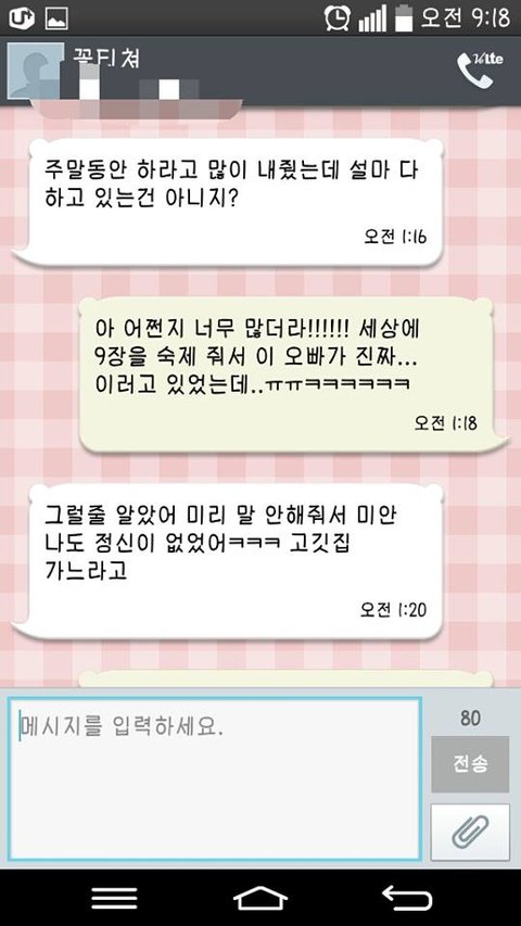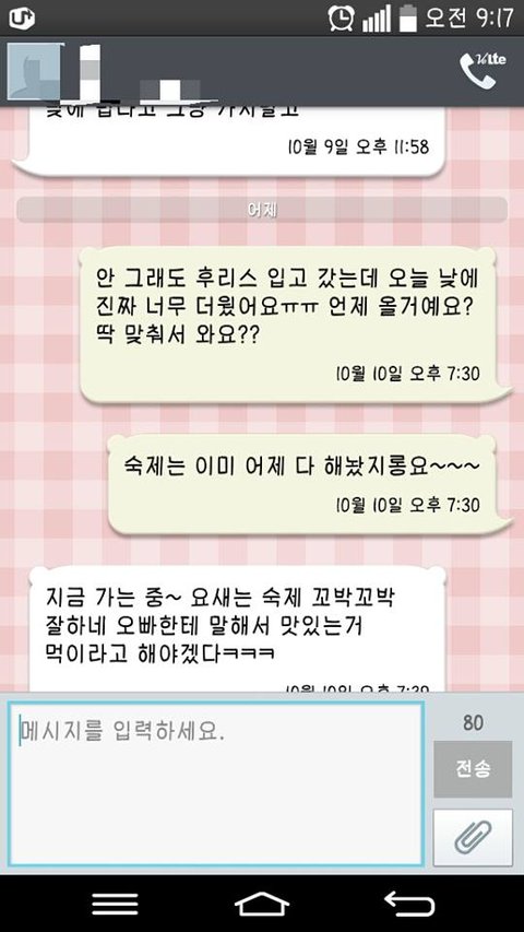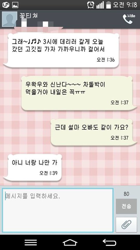 잠깐 댓글에 문자 사진 올렸다가 묻혔는데 그거부터 다시 올릴게요ㅠㅠㅠ 댓글 보니까 설령 둘 다 호감 있다해도 대학생이랑 고등학생이라 좀 아니라고..ㅠㅠ 오빠 20이고 저 18... 두 살차이인데 대학생이라.... 아아아아아아아아 작년이 좋았다 아아아아아 그리고 오빠가 장난식으로 꽃티쳐 같은 사람 없다고 나중에 결혼해~ 이랬었는데... 그건 그냥 해본 말이였을까요...? 만약에 진짜 만약에 사귀면 진짜 댓글처럼 오빠 거품물까요? 흑흑 마지막으로 과외는 이번년도부터 받았어요 오빠 대학교 가고 부터ㅠㅠ 제가 장난식으로 공부 좀 도와달라 했던게 과외가 되어버렸음.......... 그래서 가끔씩 우리 집에서 밥먹는걸로 과외비 땡치고 있어요 오빠도 가끔 술 사주고 이렇게??? 아 어제 고백하려했는데..... 오빠 좋아해서 수업 잘 안들린다고ㅠㅠㅠ 오글거리지만 말하려 했는데 문자로 고백하기 싫기도 했고... 도저히 엄두가 안나서 씻고 왔다 뻥쳤어요ㅠㅠㅠㅠㅠ 역시 고백은 좀 아니겠죠? 하... 어제 문자온거 올려요 아직 답장안했는데ㅠㅠㅠ 뭐라하는게 좋을까요 아아아아 오늘 올린 문자는 좀 이상할 수 있어요 갑자기 오빠가 너무 오바해서ㅋㅋㅋㅋㅋㅋㅋㅋㅋㅋ 어쩌다 생각이 저기까지 갔는지는 저도 잘...