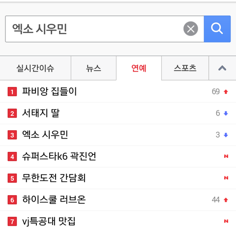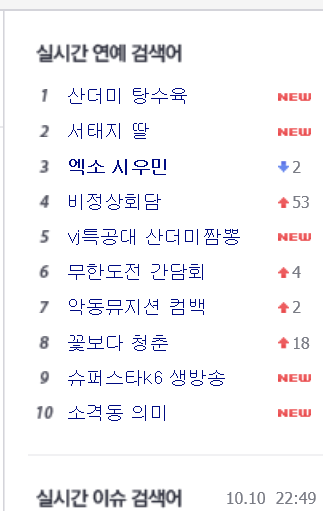 141010 파란창 실시간 연예 검색어 엑소 시우민