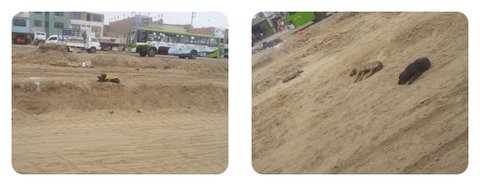 Rimac강 복개도로 공사장에서 낮잠자는 인부들, 근데 잠자는 모습은 솔직히 견공들이 더 편안하게 보인다