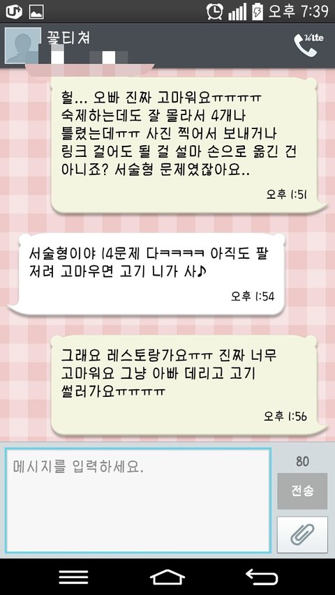 아까 고기 먹으러 가기 전 문자!! 고기집 갔다가 신나게 돌아다니다 이제 집에 들어왔네용 음... 우선 감사하다는 말 먼저 할게요 솔직히 지금 제가 쓴 글 보면 너무 횡설수설해서 저도 이게 뭔 말인가 하는데 알아봐주셔서 조언해주고ㅠㅠㅠ 감사해요.. 횡설수설한것도 모자라 지루하고ㅋㅋㅋㅋ 질질 끌고..ㅋㅋㅋ 문자 올때마다 캡쳐해서 올리고 물어봐서 그래요ㅠㅠ 그럼에도 짜증안 내주시고 꿋꿋이 도와주셔서 감사해요 정말!! 그래서 어떻게 됐냐면.....