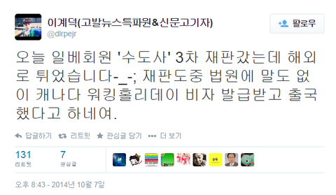 재판도중 저랬음 들어오는 순간 끌려갈텐데. 거기에 가중죄도 생기지않을려나...ㅋㅋㅋ