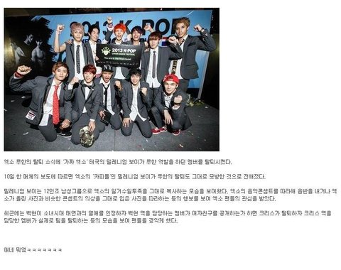 완전 데쓰노트 아녀ㅋㅋ 이제 루한 일도 잠잠해지면 또 어떤 멤버가 사고치거나 탈퇴할지 똥줄타겠네ㅋㅋ 이렇게 진지하게 커버 그룹하는 애들 첨본다ㅋㅋ 왜 한 몇년 지나면 니들이 아예 원조라고 우기지?!