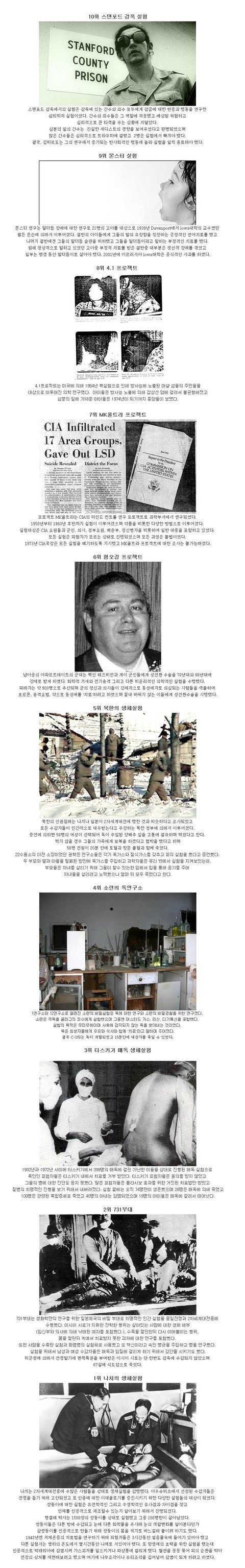악마의 생체실험 1위~10위