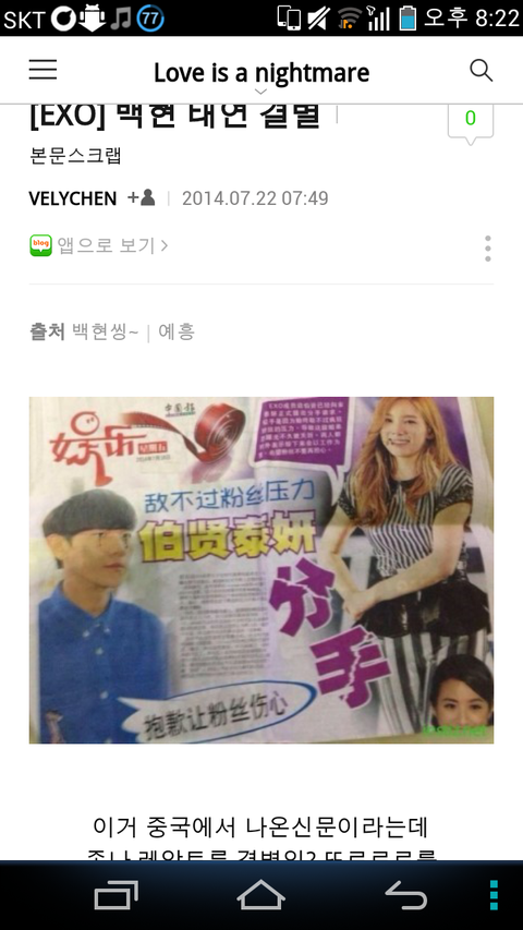 중국에서는백현태연헤어졌다고기사냄ㅡㅡ