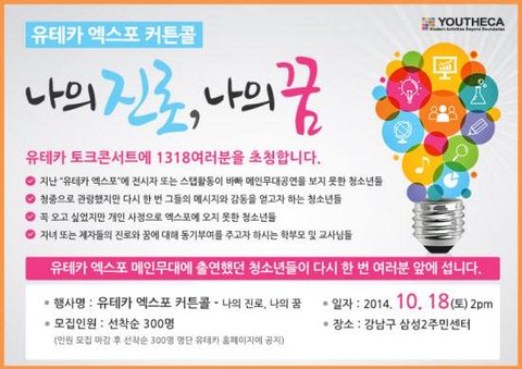 이번주 토요일 오후 2시부터 5시까지 진행이 되는 행사이구요 http://www.youtheca.com