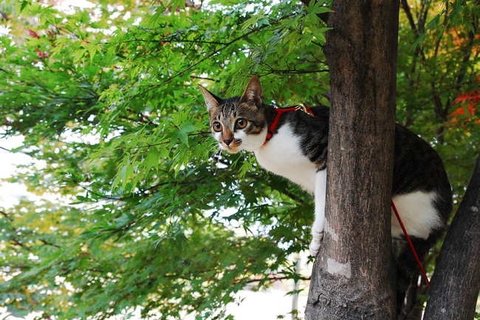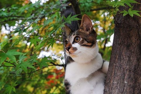 나무에 오르니 좀 용기가 생겼나 주위 살피는중