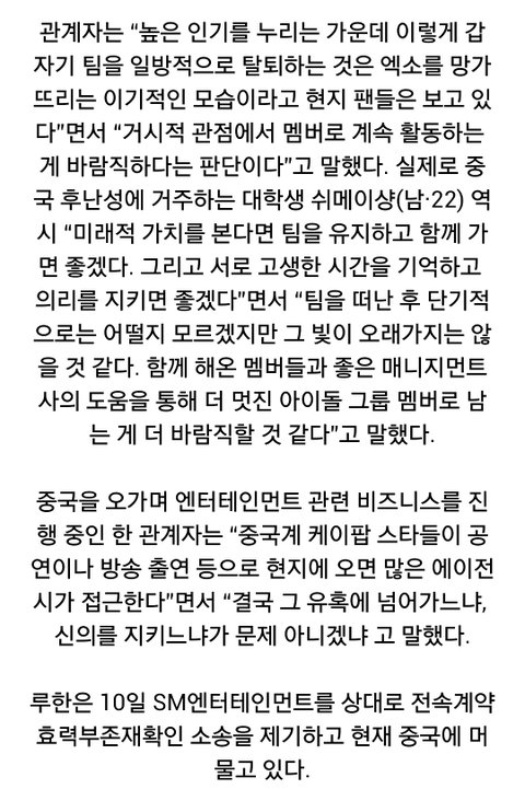 ㅈㄴ 개미안한데 말을 잘못 했음 루한 소속사 소송