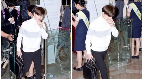 하얀 목폴라에 깔끔하게 가방 들고 공항 걸어 나오는데..