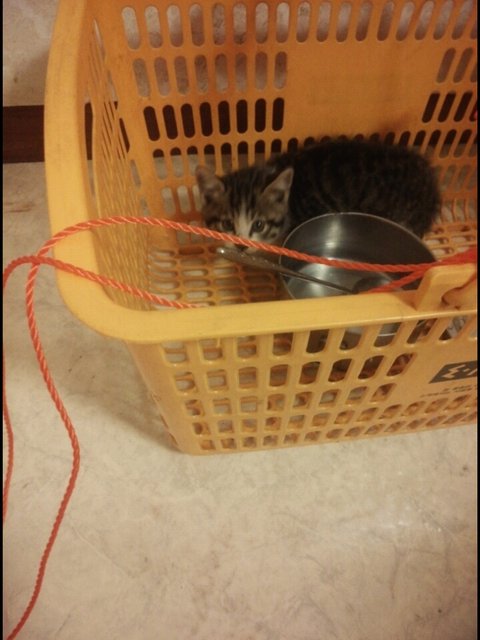 어미는 낳고 사라진건지 계속 안보여서 스팸을 넣은 이마트 바구니를 내려서 유인한후 천천히 올려서 구출했어요.