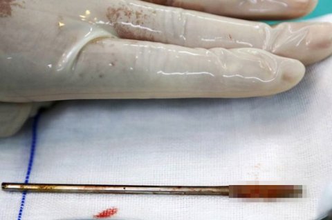 하지만 쇠막대는 첫 시도에 뒤로 밀려 방광을 찔렀다 엄청난 고통에도 불구하고 남성은 몇 달간  아무에게도 이 사실을 말하지 않은 것으로 전해졌다