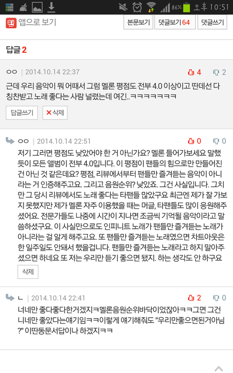 너무 화나 아 진짜.. 이때까지 팬질하면서 인피니트 노래 퀄로 까인 적도 없었는데 판은 왤캐 심함 나는 속상한 마음에 제대로 된 이유까지 들어서 말한 적도 많은데 맨날 빠순이가 뭘 하네 이런 소리나 듣고ㅋㅋㅋㅋㅋ아 진짜 억울하다