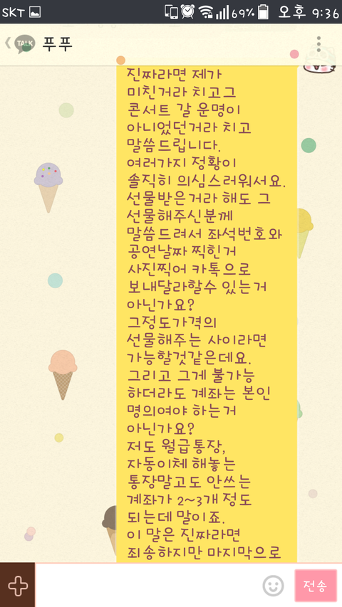 한줄기 빛과 같은 희망을 안고 바로 카톡을 했습니다.