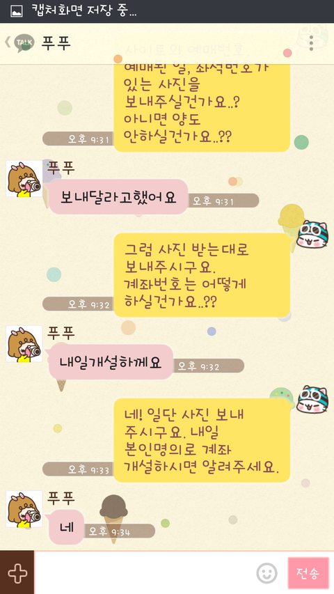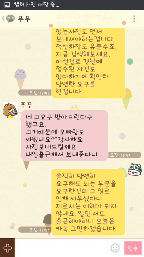 ⑥ 그리고 저와같이 카톡 등(문자 및 SNS) 등의 내용은 처음부터 끝까지 화면전체 캡쳐해놓으시기 바랍니다. 이또한 나중에 증거가 될 수 있습니다.