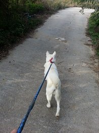 저희 엄마와 저와 함께 짱이는 매일 저녁마다 농로길(시골길이요.ㅋ.ㅋ)을 한 시간정도 산책해요..