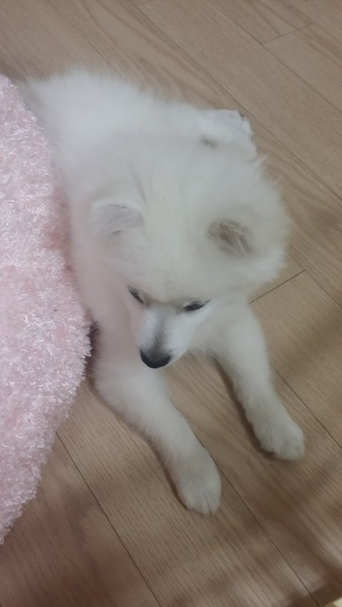 (이때가 생후 4개월? 정도 였는데 털갈이 때문에 얼굴이 원숭이 모양 이었어요 ㅎㅎ)