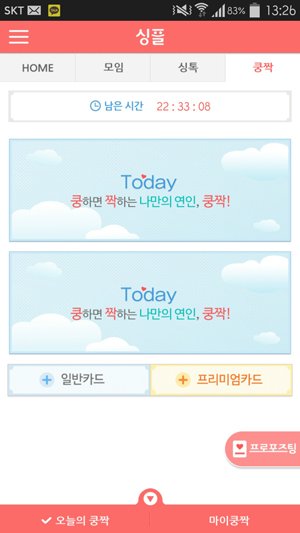 카드를 누르면 이렇게 맨날 설정해놓은 이상형에 부합하는 사람 추천해주고