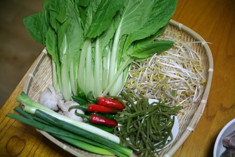 얼갈이배추 / 고사리 살려다가 그냥 고구마순 구입 / 숙주나물 / 청고추홍고추 / 마늘 / 대파