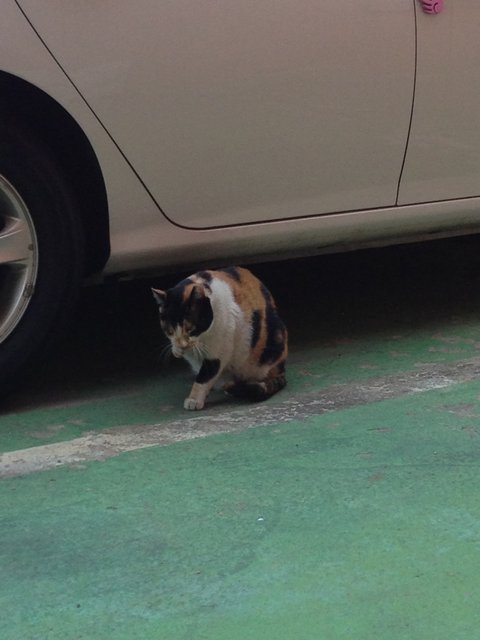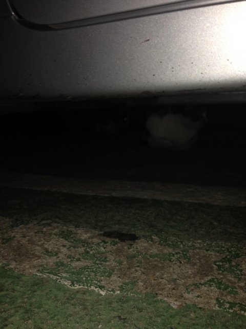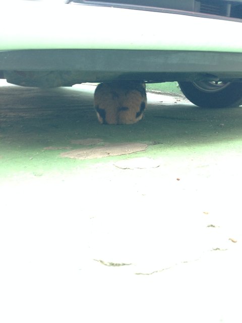 익숙한 울음에 뭐지? 하면서 쪼그려 앉아 허리를 숙여서 차 밑에를 쳐다봤더니...