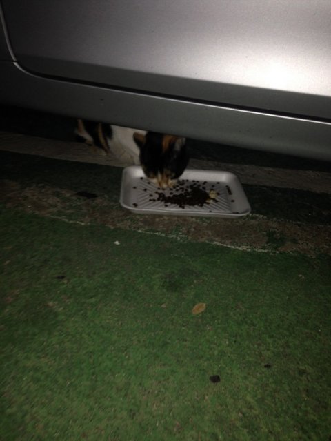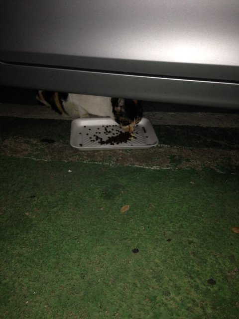라고 생각하며 집에 있는 쿤이의 참치+치킨 캔과 사료를 몰래 훔쳐서 앞에다 놔뒀어요.(쿤아 미안)