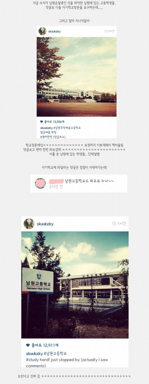 남원고등학교 탐방하고 간 수지 인스타업뎃