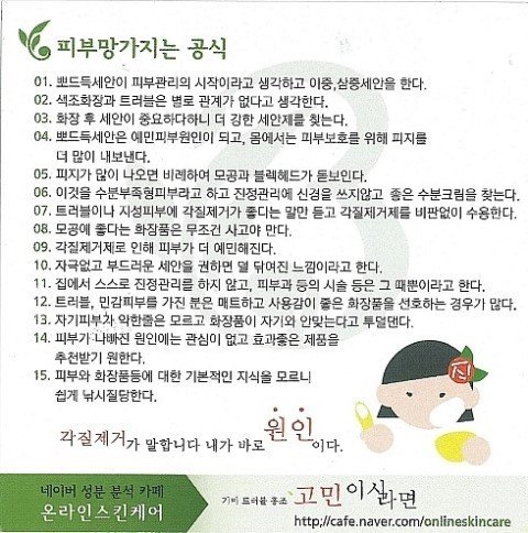 무료피부상담이나 개인적인 질문은 jcok456@naver.com 으로 보내주세요.