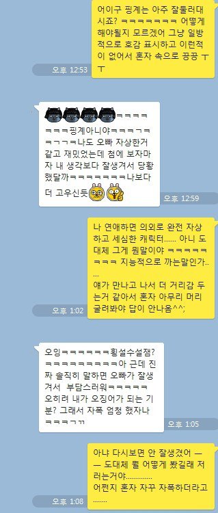 ( 중간에 카톡 배경이 바뀌는건 윗부분은 폰에서 캡쳐. 아랫부분은 피시카톡에서 캡쳐했기 때문이에요)