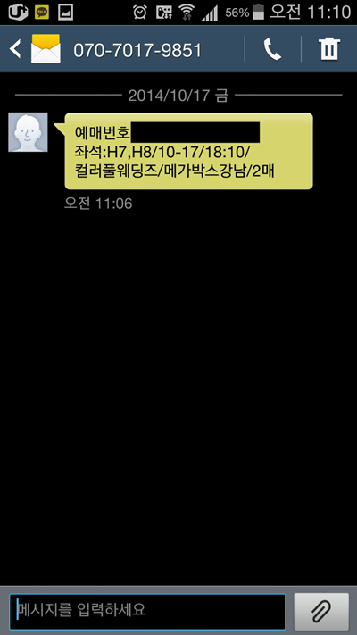 (+) 인증샷~(예매번호는 가렸어요 ㅋㅋㅋㅋㅋ)