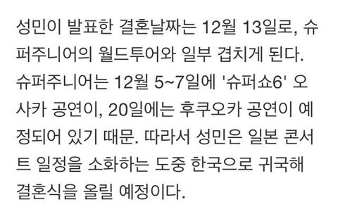 공연 중 한국 와서 결혼식..ㅎ