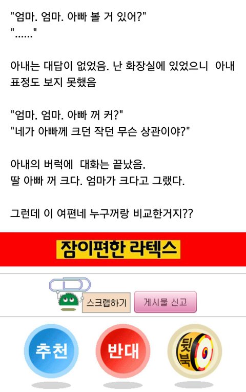그렇다고해서 괜찮다는건 아니지요.차이점은 그래도 섹드립이라는 글을 보면 오유는 점잖고 나근나근하게 한다는점..일베는 진짜 노골적인 단어로 표현한다는 점이겠지만 .결론은 둘다 청소년에겐 유익하지 않는 섹드립이 되겠네요