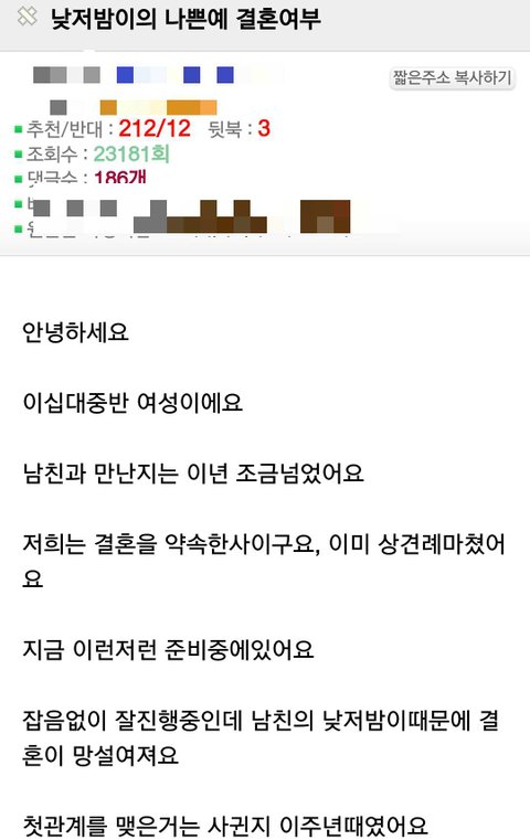 글쓴이야 힘들어서 올렸겠지만 , 그 고민의 상담장소가 적절치 않네요..청소년이 많은 싸이트에