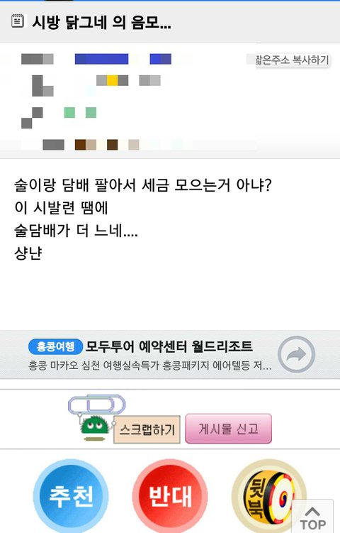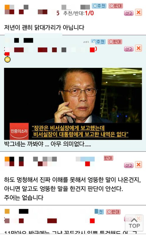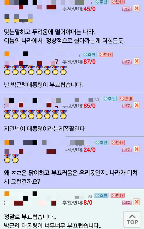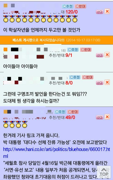 혹여나 정부와 박근혜대통령을 옹호하는 늬앙스 조금이라도 풍기면 바로 비추천폭탄 맞습니다.