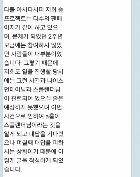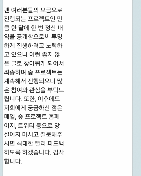 숲 프로젝트 모금도 먹튀 해명글 올라옴