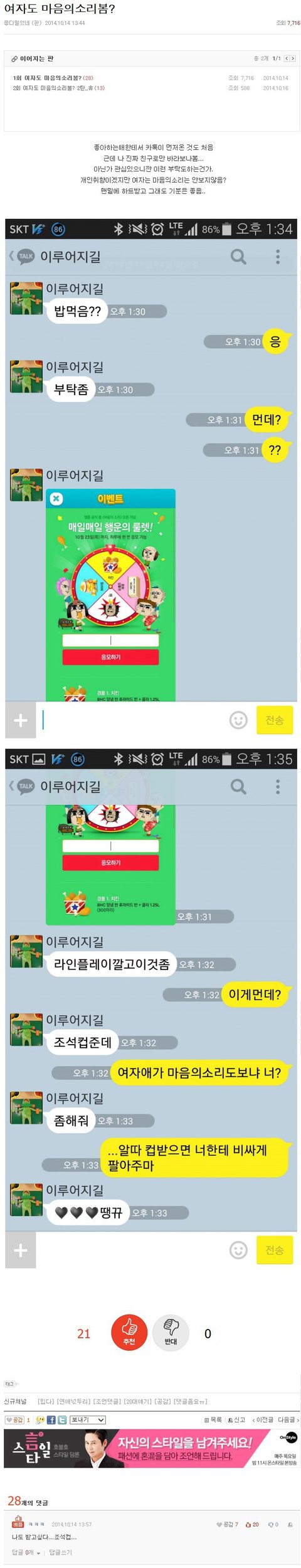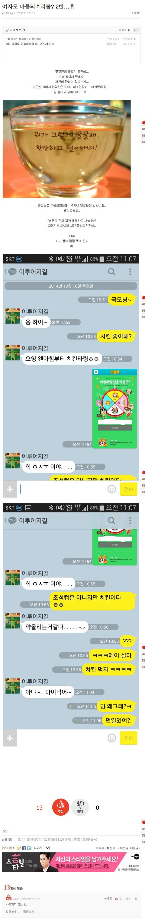 여자마음 알게해준 L어플 감사드리며 치킨 맛있게 잘먹겠습니다.