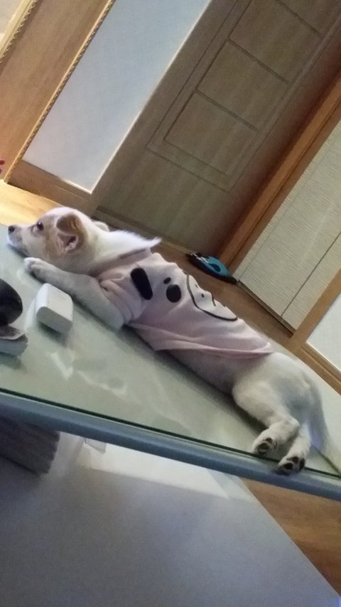 강아지 보자마자 제가 집으로 데려가 보살펴야겠다고 생각하고 집으로 데려가서 깨끗이 목욕시키고 접종도했답니다