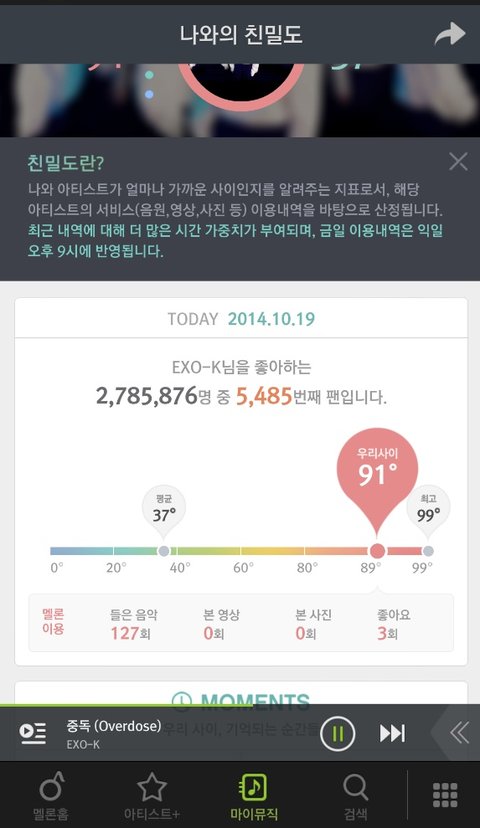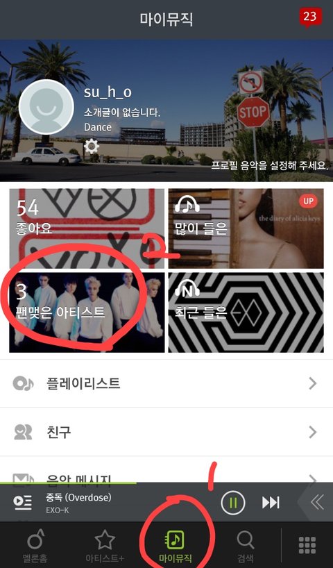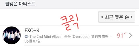 멜론 어플 들어가자마자 밑쪽에 마이뮤직 클릭 후 내가 팬맺은 아티스트 클릭