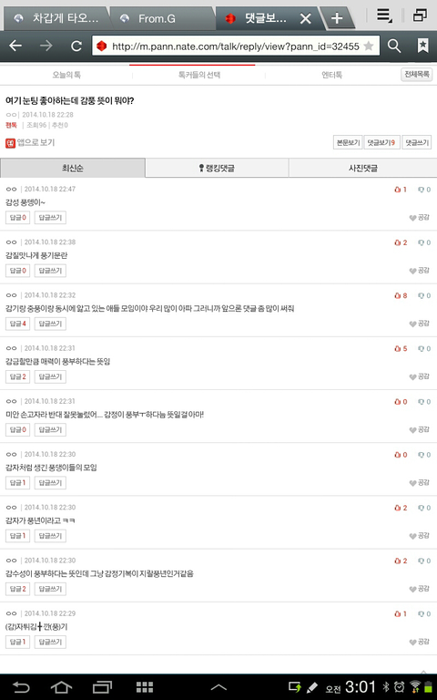 사실 한 1년 전에 감풍 뜻풀이 한 댓글 하나 더있었거든ㅋㅋ그때도 캡쳐했는데 파일이 날아가버렸나봐...ㅠ