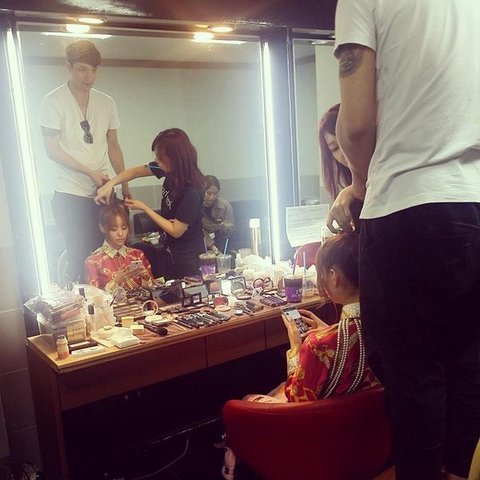 의자까지 밟고 올라선 스타일리스트분의 열정!