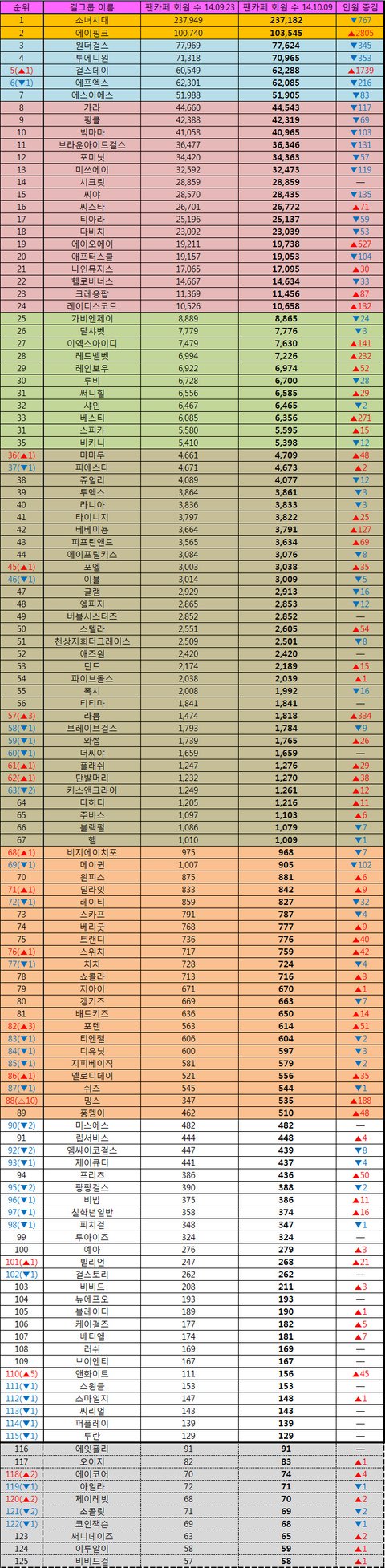 우리 에이핑크가 4위쯤 하는데 이제 에이핑크가 사실상 국민걸그룹 되는거 아니야?