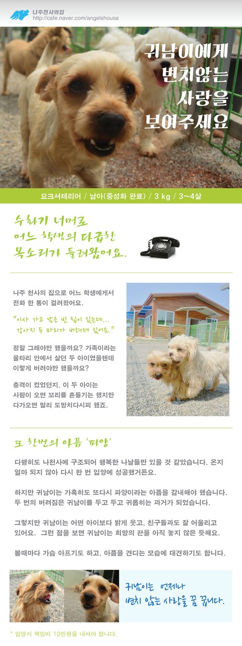 입양안내 및 신청서 : http://cafe.naver.com/angelshousa/8579