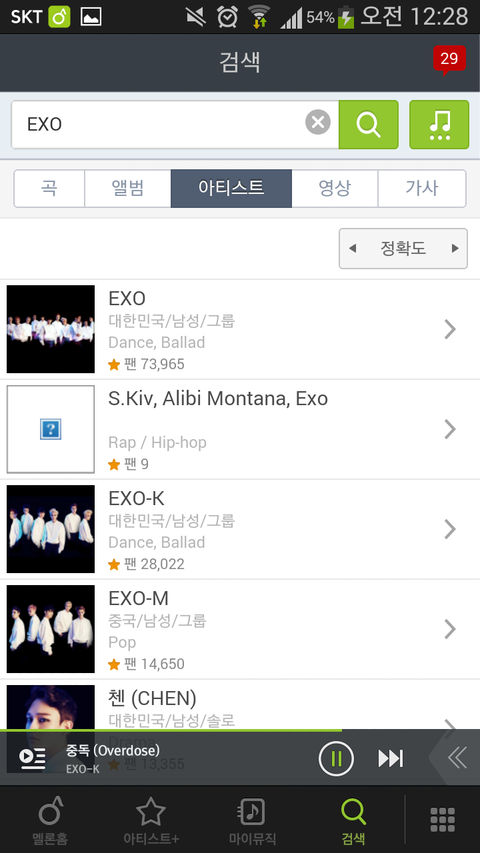 EXO, EXO-K, EXO-M 을 검색한다
