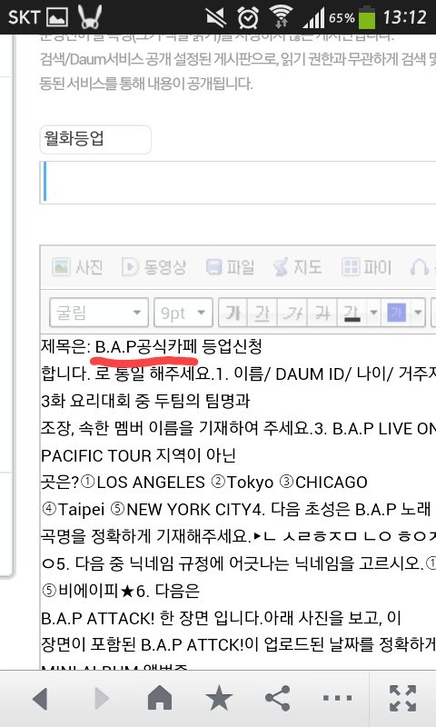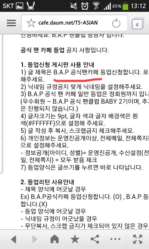 공지엔 공식팬카페로 적으라고 되잇는데 작성하려는데 그냥 공식카페ㅋㅋㅋㅋ컴터로등업신청이나하러ㅂ