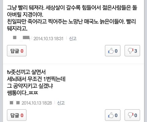 이게 다음 노인복지 축소 게시판에 달린 댓글들이다.이게 정상으로 보이냐????