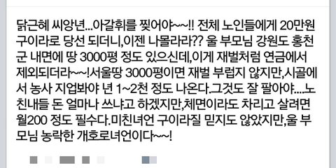그냥 아주 무조건 1번찍는다면서 욕하기 바쁘다.하여튼 뭐 기호2번 국회의원이란 작자들도 노인들에게 폐륜적인 말을 내뱉는 경우도 있으니
