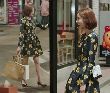 샤틴 꽃무늬 원피스 입고
