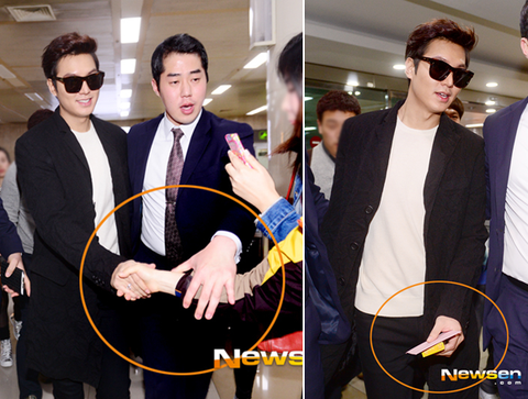 이날 기다리던 팬들 손 하나하나 잡아주고